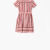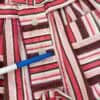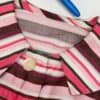 Girls handmade 1960s vintage dress with pink stripes, functional pockets and pretty bow details. Features a lovely cut-away Peter-Pan-style collar and buttons centrally on the front down to the hips. The dress is front opening and closes with poppers located behind the buttons. I’m not 100% sure what the material is exactly because it is handmade and doesn’t have a care label, but he material feels like a mid-weight cotton and has a lovely fine smooth finish. The proportions of this dress and slightly shorter than what you expect for an adult so we think it was designed to fit a child – or a petite person – but please refer to the garment measurements below as our recommended size really is an estimate.