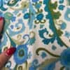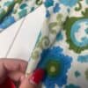 Handmade 70s vintage floral top in blue and green. This off white 1970s top features a bold blue and green floral print, a round neck and three quarter sleeves. Made from a lightweight synthetic material.