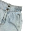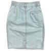 High waist bleach denim penic skirt with exaggerated hips with two front and one back pocket. The skirt has a small split at the back, which allows movement when walking or sitting.