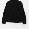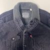 Levis denim sherpa trucker jacket in black. This black Levis trucker jacket features two chest pockets with snap button closures, two open side pockets and the Levis logo is embroidered onto the left chest pocket. This jacket also features a snug off black sherpa lining and collar, a full length snap button closure and is made from a heavyweight cotton with a synthetic lining.