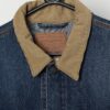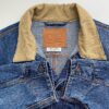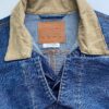 Levis Premium chore jacket with cord collar. This Premium Levis denim chore jacket features a beige cord collar, two chest pockets, button cuffs, a button closure and the classic red Levis tab (lEvis) is on the left chest pocket. Made from a heavyweight cotton.