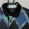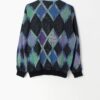 Mens 90s vintage polo shirt style jumper in black with purple and green diamond pattern – Small / Medium