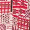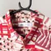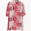 Mens 90s vintage printed shirt with hot red, pink and purple geometric lion fish inspired patten, including polka dot and lattice shapes. This gives me real Caribbean coral reef vibes and will raise the temperature of any party!