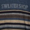 Mens 90s Vintage Sweater Shop spellout logo lightweight blue striped sweater. Made in the United Kingdom. Fantastic lightweight sweater ideal for winter layering. Our recommended size: Medium Label Says: No size label Condition: Very Good Material: 100% Acrylic We’ve provided garment measurements below and suggest you compare these to a similar garment you own to determine a good fit. Measurements are taken flat and doubled for waist and hip.