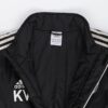 Mens black Adidas padded puffer coat. This coat features two side pockets with zip closures, a hidden zip and fabric closure and a high padded neck. Made from a heavyweight synthetic blend.