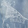 Men’s customised vintage Levis denim jacket, light blue. This rare and customised Y2K Levis light blue denim jacket features an amazing peace fist and white dove print on the back, two chest pockets with button closures, an adjustable button hem and buttoned cuffs. Made from a mid-weight cotton.