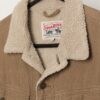 Men’s Lee Storm Rider cord jacket in pale brown. This pale brown cord Storm Rider Lee trucker jacket features features a snug off white sherpa lining, a snap button closure, two chest pockets with snap button closures, two open side pockets and the Lee logo is embroidered onto the left chest pocket. Made from a heavyweight cotton with a synthetic lining.