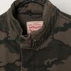 Men’s Levis camo jacket with fold away hood. This camouflage Levis jacket features two chest pockets with snap button closures, two pockets above the hem with snap button closures and the Levis logo is embroidered onto the chest pocket. This jacket also features a a snap button and full length hidden zip closure, adjustable cuffs with hook and loop fastenings and a fold away large hood. Made from a heavyweight cotton with a polyester lining.