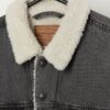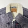 Men’s Levis premium denim sherpa trucker jacket in grey, white collar. This premium Levis grey trucker jacket features features a snug white sherpa lining, a snap button closure, two chest pockets with snap button closures, two open side pockets and the Levis logo is embroidered onto the left chest pocket. Made from a heavyweight cotton blend with a synthetic lining.