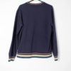Mens navy Champion crewneck sweatshirt with multicoloured cuffs and hem. Brand logo printed across chest.