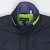 Mens 90s vintage Nevica padded ski jacket. This jacket features a luminous yellow hood that can be tucked away into the neck, a high padded neck, a hidden full length zip and snap button closure, two pockets above the hem with zip closures, two chest pockets with zip closures and snap button closures on the side seam for extra comfort. Made from a heavyweight synthetic blend.