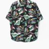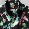 Super rare mens vintage 1980s printed shirt in black with neon pink green and yellow beach inspired images and text including ‘tube riding style’ and ‘surf point’, by Jazz fashion. Features a button down collar and pocket. The perfect retro pool side shirt for your summer holidays! Love love love this shirt!