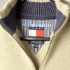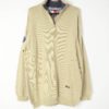 Mens vintage 90s Tommy Hilfiger knitted quarter zip pullover in beige. Arm patch on right sleeve.