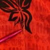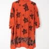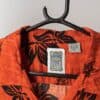 Mens Vintage Hawaiian shirt in a bold orange red with black striking hibiscus floral motifs. Really punchy design with single buttoned chest pocket.