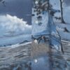 Mens Vintage Hawaiian shirt with dusky blue sea and sky abstract landscape scene. Nice chunky buttons (two spare). Single buttoned chest pocket.
