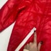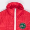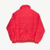 Mens vintage 80s red puffer jacket with lumberjack patch. This 1980s puffer jacket features a high, collared neck, a full length zip closure and two side pockets with zip closures. Made from a heavyweight synthetic material.