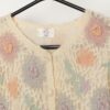 Pretty vintage pastel knitted fluffy cardigan. This beautiful cream cardigan features a pastel floral pattern, a full length matching material button closure, a round neck and has a stretchy hem and cuffs for a personal fit. Made from a mid-weight mohair blend.