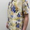 Quirky mens vintage shirt with fun cartoon and graffiti motif. Wooden buttons, chest pocket and collar details.