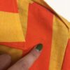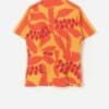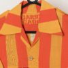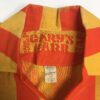 Rare 70s vintage bright Hawaiian shirt by Gary’s Garb. This 1960/70s Hawaiian shirt by Gary Garb features a bright orange and yellow striped and floral design. This shirt also features a large open collar, a real wood button closure, two chest pockets on the chest with button closures and a split hem on the back. Made in Hawaii from a lightweight cotton blend.