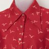 Rare vintage 1920s style illustration women’s polo top. This stunning 70s women’s polo top features a dagger collar, a off-white button closure, short sleeves and a beautiful 1920s style illustration on the front of the polo. Made from a lightweight synthetic material.