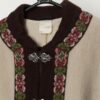 Rare vintage A.S Evebofoss Norwegian wool jacket in cream and brown. This stunning 1970s Norwegian cream wool jacket features a floral pattern around the mock collar, opening, cuffs and pockets. This jacket also features a beautiful pewter clasp closure, two open pockets above the hem and is made from a heavyweight pure new wool.