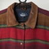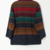 Rare vintage Woolrich blanket coat with leather collar, colourful stripes. An amazing and unique piece by the famous Woolrich brand, featuring two open pockets, detailed bronze snap buttons and a brown leather collar and cuffs. Circa 1980-1990. Made from a heavy weight wool and synthetic lining to keep you warm this winter. Made for women.