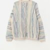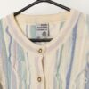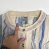 Rare Y2K vintage Coogi style pastel cardigan for women. This Y2K cream cardigan features a pastel blue and purple Coogi style pattern, a full length button closure (has a spare button) and a crew neck. Made in Australia from a heavyweight pure new wool.