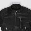 Superdry café biker leather jacket in black. This jacket features a zip closure, one chest pocket with zip closure, two side pockets with zip closures and is made from a heavyweight soft lamb skin leather and synthetic lining.