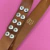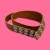 A lovely tan/caramel vintage leather belt with a metal popper closure. Nicely worn allover, with colours of light brown, caramel and honey.