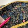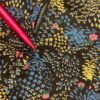 A beautiful vintage 1950s day dress with lovely ditsy floral print of blue, yellow and pink on a black background. It has a lovely shape, with a slightly dropped waist with the hem falling below the knee. The neckline has been altered so that it is a little smaller than it was originally; it has been sewn by hand but could be let out by about 3cm on each side (best estimate). There is a metal lightning zip closure on the back and a label “Mericana dress by Linzi, Made in England”