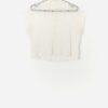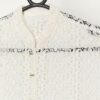 Vintage 1950s lace blouse with floral pattern. This cream 50s lace blouse features gold detailing along the opening, a hook and eye closure, a high neck and short sleeves. Made from a lightweight soft lace.