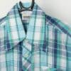Vintage 1970s plaid shirt with original tags, deadstock. This blue shirt with a green and white plaid pattern throughout, features an open chest pocket, a dagger collar, an off white button closure and buttoned cuffs. Made from a lightweight super soft cotton blend.
