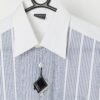 Vintage 1970s striped shirt with original tags. This white striped shirt with a blue stripe chest features a pointed collar, a chest pocket, an off white button closure and buttoned cuffs. Made from a lightweight soft cotton blend.