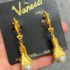Vintage 1980s statement earrings in gold and simulated pearl by Vanecci Italy. A really lovely pair of bold typically 80s clip on earrings with original display card. Deadstock (never used). They also come with little clip covers on the back.