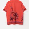 Vintage 70s Batik bright orange shirt. This 1970s vibrant orange shirt by Batik features a colourful abstract pattern on the dagger collar, hem and cuffs. This shirt also features a full length button closure, two pockets above the hem, short sleeves and is made from a lightweight cotton blend.