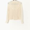 Vintage 70s women’s lace blouse, pale beige with long sleeves and button up back. Featires a gorgeous frill collar and chest detail with three faux buttons down the front.
