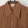 Vintage 70s striped shirt with original tags. This cool brown shirt with a red and pastel brown striped pattern, features a pointed collar, a dark grey button closure and buttoned cuffs. Made from a lightweight cotton.