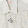 Vintage 70s striped shirt with original tags. This white shirt with an orange, green and brown striped pattern, features a pointed collar, an off white button closure and buttoned cuffs. Made from a lightweight cotton blend.