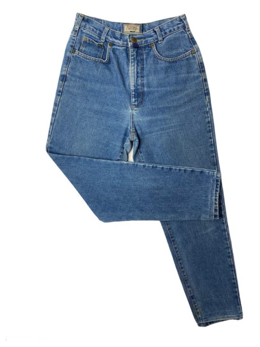 Vintage late 80s to early 90s Joker, Humphrey & Brothers denim jeans. These jeans are a lovely medium blue colour, they feature five pockets, zip fly, back patch with metal Joker pin and a unique double ankle hem. Classic Mom jean shape.