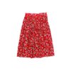 Vintage red floral pleated midi skirt with pleat. Features bright primary colours, lightweight fabric, and fastens with a zip.