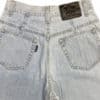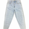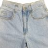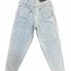 Vintage 1980s Angels denim jeans. These light blue jeans are a classic mom shape with high waist and tapered leg. Features pockets, a zip fly and Angel belt patch, silver rhinestones and ‘Angel’ embroidery. Originally manufactured in Germany.