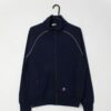 Vintage 80s navy blue sports jacket. This 1980s navy track jacket features a full length zip closure, two side pockets with zip closures and the Nyltest logo is embroidered above the hem. Made from a mid-weight cotton blend with a synthetic lining.