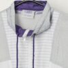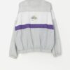 Vintage 80s silver and purple sports jacket. This 1980s silver, grey and deep purple sports jacket features a zip closure, a draw string neck, two side pockets with zip closures and is made from a lightweight cotton blend.