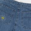 Vintage 90s Lee denim shorts, made in USA. These blue Lee shorts feature two big front pockets, two back pockets, a zip fly and a cool floral embroidery is on the back left pocket in white and yellow. Made in the USA from a mid-weight cotton.