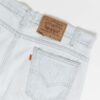 Vintage 90s Levis 505 denim shorts. These 1990s light blue denim shorts by Levis feature two front pockets, two back pockets, a zip fly and the Levis patch is on on the back right of the waist above the orange Levis tab. Made in the USA from a mid-weight cotton.
