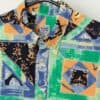 Vintage abstract shirt by Think Pink with button down collar. This bold abstract shirt features a pastel button closure and a button down collar. This shirt also features one chest pocket with the Think Pink logo embroidered in green and pink on the left chest pocket. Made in Italy from a mid-weight cotton.