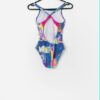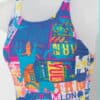 Vintage abstract swimsuit by Arena. This 80s/90s blue, orange and pink abstract swimsuit features a round neck, cross back straps and is made from a lightweight synthetic blend.