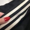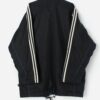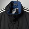 Vintage Adidas padded jacket in black, blue and white. This 90s Adidas padded jacket features a hidden zip and branded snap button closure, electric blue trim and piping and a drawstring hem. This jacket also features the classic three stripes in white along the shoulders and arm and the Adidas trefoil logo on the left of the chest. Made from a heavyweight polyester with a polyester lining.