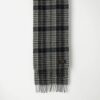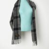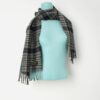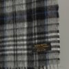 Vintage Alex Begg wool scarf, grey plaid scarf. This black, grey and blue plaid scarf features fringe detail and is made from a lightweight, soft wool.