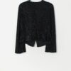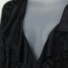 Vintage Armani Collezioni beaded jacket with ruffle front. This Y2K Armani Collezioni silk black beaded jacket features a ruffle front, a button closure, shoulder pads and a flared sleeve. Made in heavyweight with a heavyweight silk. Circa 2006.